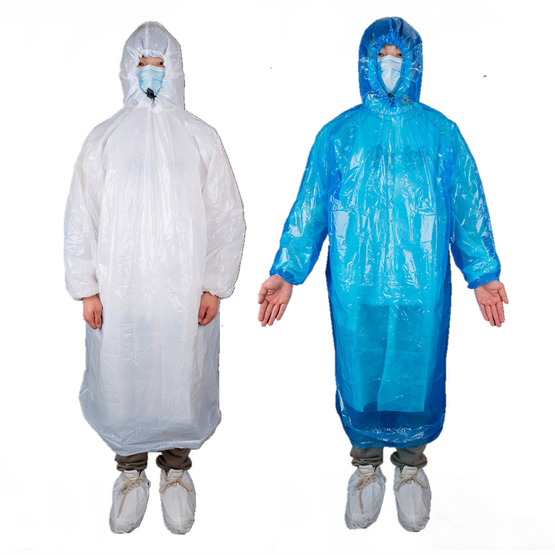 Waterdichte PE eenmalige beschermkleding, transparante eenmalige poncho regenjas