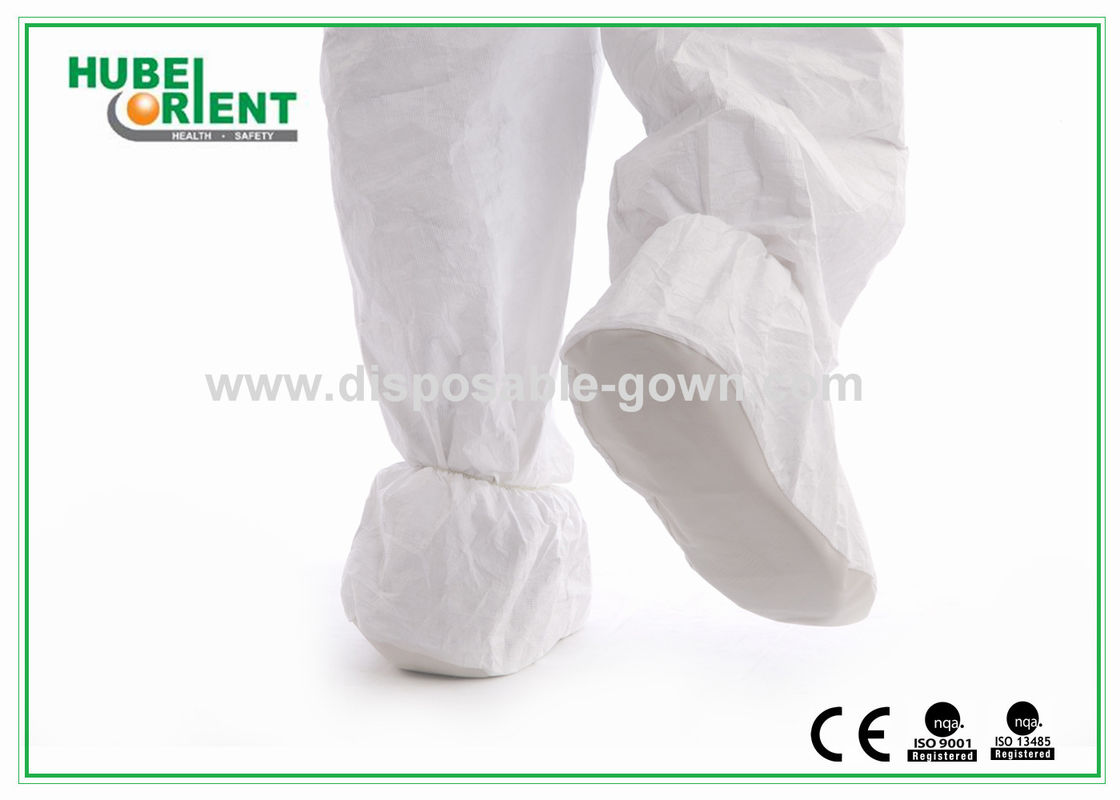 Witte glybestendige Tyvek eenmalige schoenbedekkingen laarzen met PVC-zool 43gm