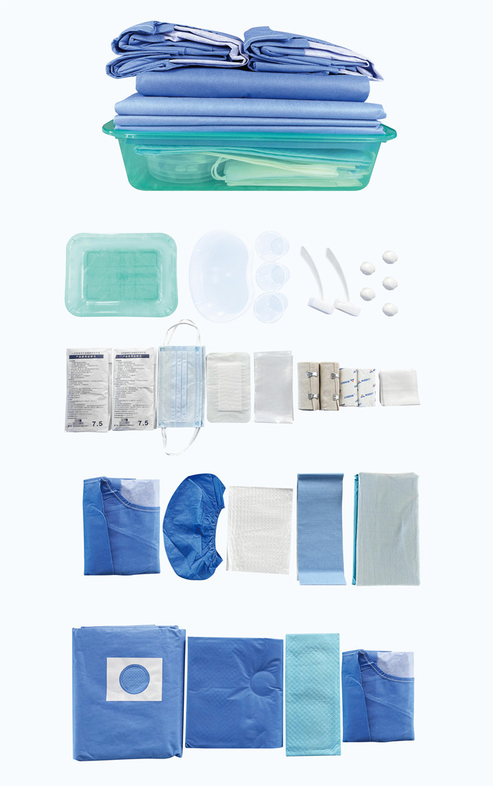 Elke wegwerpsteriele universele verpakking bevat een versterkte chirurgische jurk, tafelbedekking, kleefdraad, verpakking, enz.